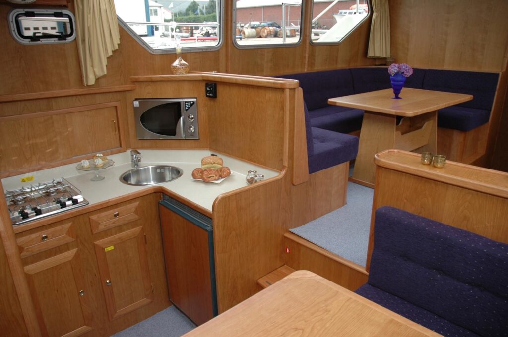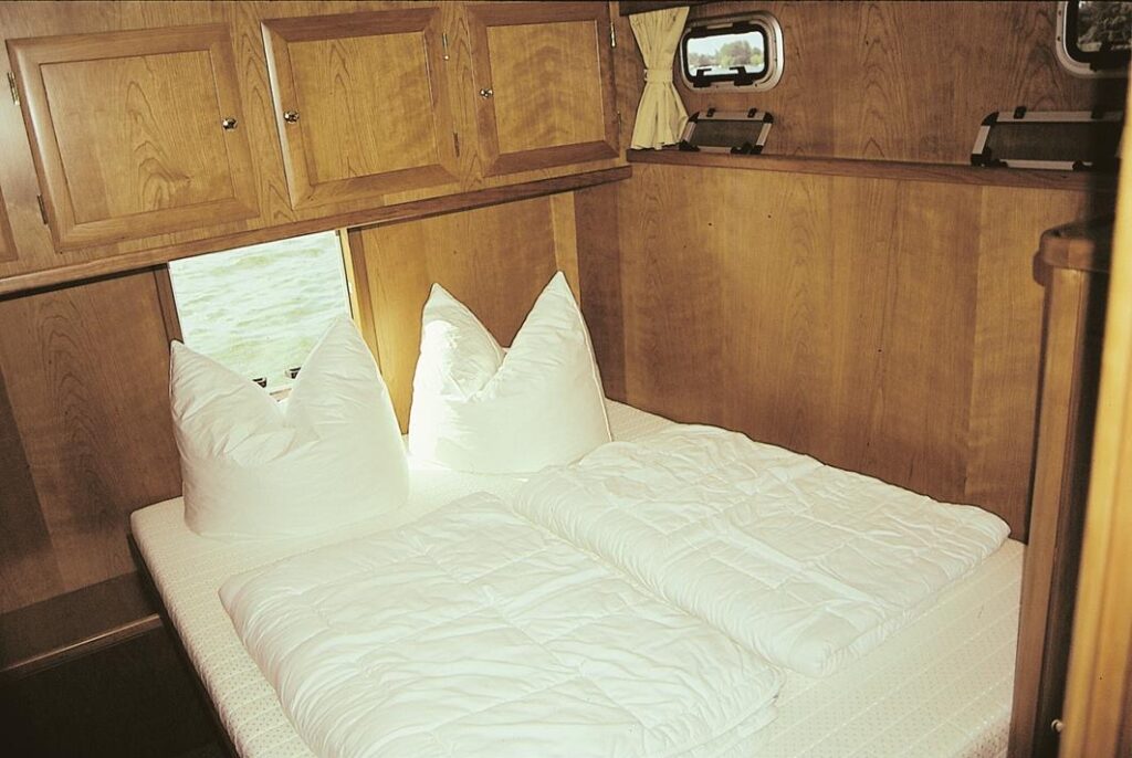 Mit einer Länge von 11,80 Metern bietet sie großzügigen Platz für bis zu 6 Personen (+2 optional) und ist ideal für entspannte Törns auf Binnengewässern.